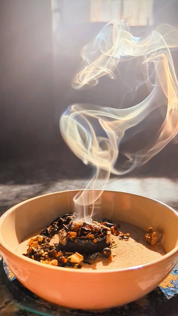 Wir brauchen ein ruhiges 2 – 2,5 stündiges Zeitfenster um eine „große“ Räucherung durchzuführen. Du kannst gerne mit dabei sein, um Altes und Verbrauchtes mit Hilfe u.a. des Rauches und Duftes zu lösen und Neues einzuladen.